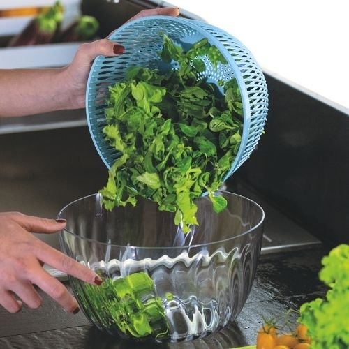 Guzzini centrifuga savršeno kombinuje brz i efikasan proces sušenja opranog zelenog povrća sa funkcijom elegantne posude za serviranje i čuvanje.