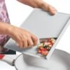 Daska je izrađena od 100% recikliranog materijala (rPET) dobijenog od odbačenih plastičnih boca za vodu, čime se direktno smanjuje plastični otpad i podstiče kružna ekonomija. Pametni neklizajući ivice osiguravaju da daska ostane čvrsto na radnoj površini, čineći svaku aktivnost u kuhinji sigurnijom i preciznijom.