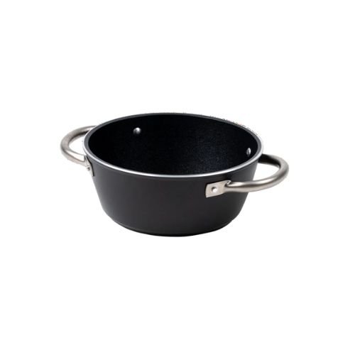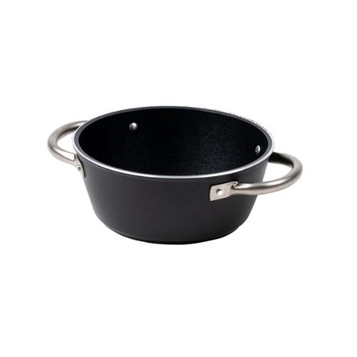 ELEGANTE šerpae spajaju profesionalni kvalitet i funkcionalnost. Telo je izrađeno od ekstra debelog, peskarenog aluminijuma, što povećava trajnost posuđa i omogućava brže i ravnomernije zagrevanje. Donji deo je ojačan slojem nerđajućeg čelika, pa je šerpa kompatibilna sa svim vrstama ploča – uključujući indukciju.