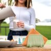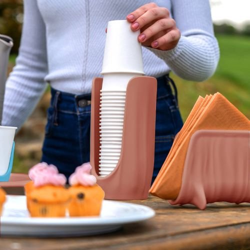 Minimalistički, prirodni i praktični dizajn koji čuva urednost i unosi stil u trpezarijski prostor. Napravljeno u potpunosti od reciklirane plastike (post-potrošački PET), ekvivalentne otprilike 2 PET flaša za vodu.