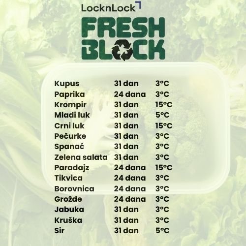 Želite li da vaše voće i povrće ostane sveže duže nego ikad? Predstavljamo vam Lock n Lock Fresh Block posude – revolucionarno rešenje dizajnirano da produži svežinu vaših namirnica do čak 31 dan!