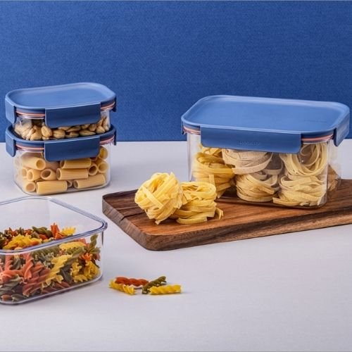 Kvadratni oblik omogućava bolje slaganje, uštedu prostora i preglednost. Posude se savršeno uklapaju na police frižidera i ormarića.