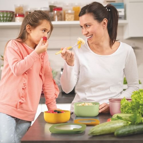 Kvadratni oblik posuda olakšava slaganje i maksimalno iskorisrte prostor u frižideru, zamrzivaču ili kuhinjskoj polici. Poklopac sa dvostrukim zatvaranjem čini ih potpuno hermetičkim, čuvajući svežinu i sprečavajući prosipanje, dok ugrađeni ventil omogućava korišćenje u mikrotalasnoj rerni sa poklopcem.