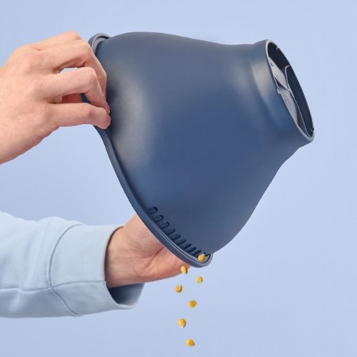 Jedna posuda služi za sve korake: pripremu, začinjavanje i serviranje. Nakon upotrebe, baza se sklapa, čime se štedi prostor u kuhinji.