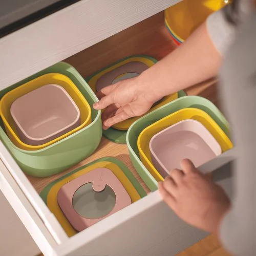 Za organizaciju hrane u frižideru ili ormarićima, odličan izbor je set Guzzini činija Eco Store&More, koji je praktičan za svakodnevnu upotrebu i lako se uklapa u moderan kuhinjski prostor.